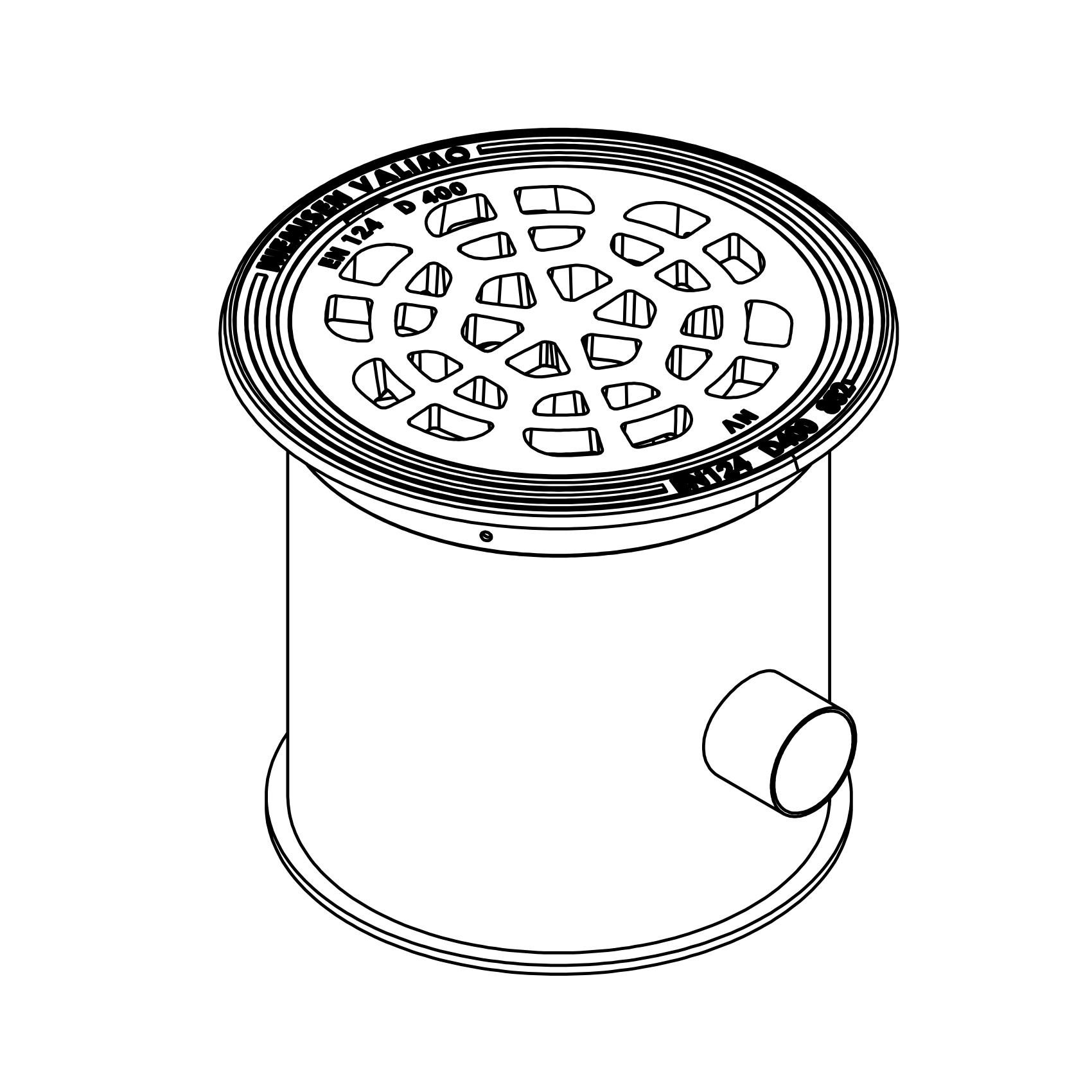 Rännikaivo syöksytorven alle. Poistoyhde ø110 mm. Valurautainen ritiläkansi.